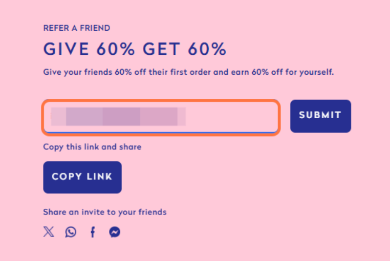 3. Type your friend’s email address into the box and click submit to send them an automatic email with their code