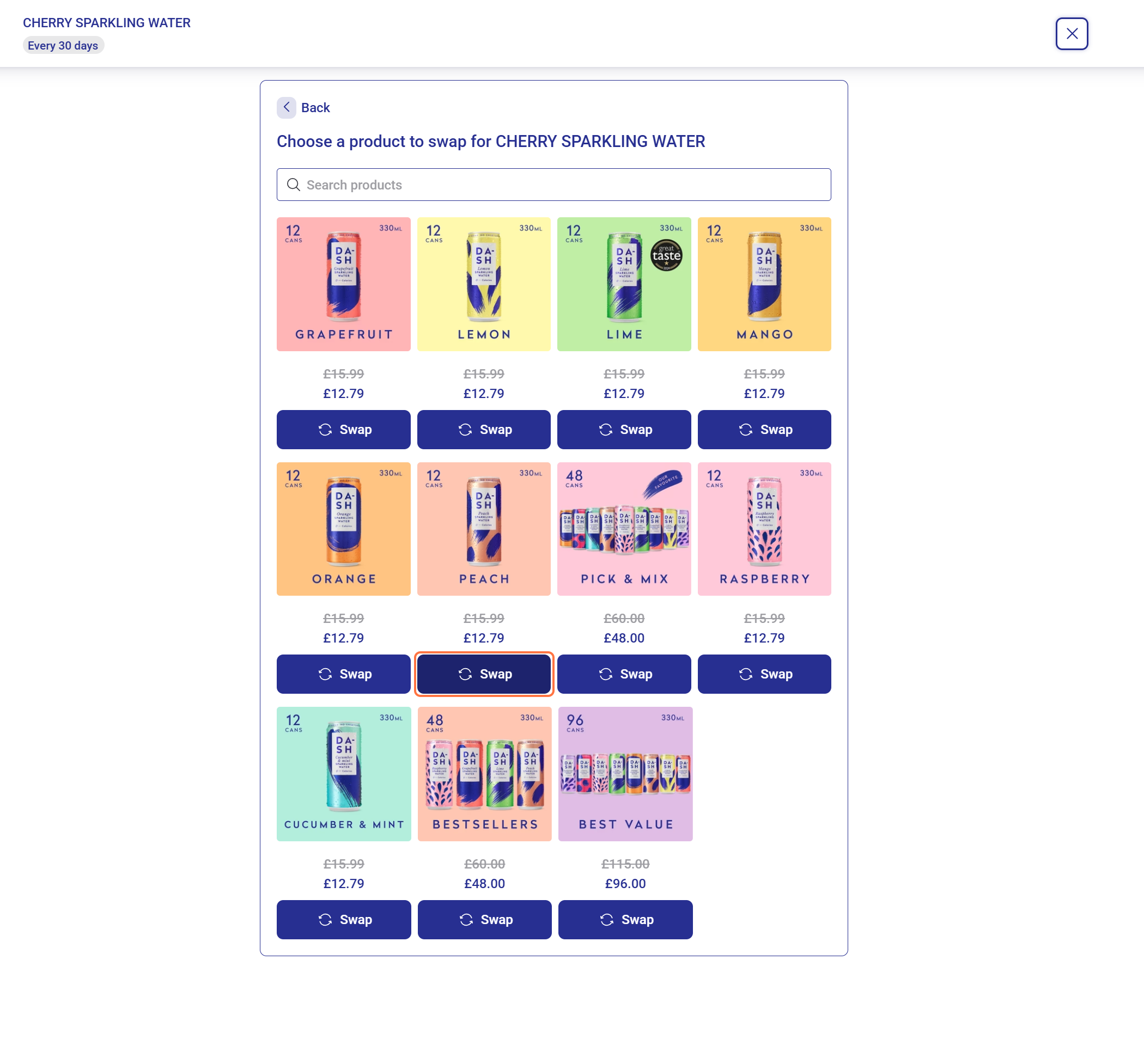 4. Select the flavour you'd like to swap to, and click 'Swap'